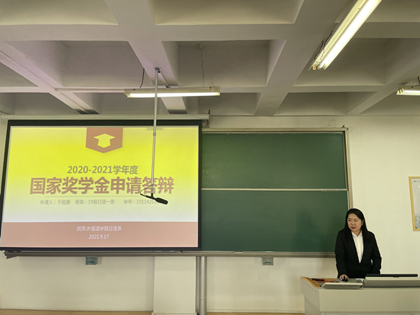 9月17日下午,外国语学院分别在文理大楼417会议室、观成楼506室举行2020-2021学年研究生、本科生国家奖学金答辩会。院长任育新、党委副书记焦娜、副院长冶文玲、各系部主任、辅导员担任评委,学院研究生及本科生代表共50余人观摩答辩会。