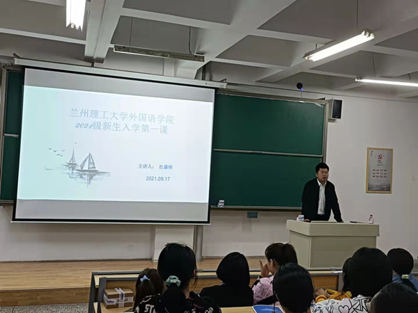 9月17日晚,外国语学院大学第一课在观成楼206教室开讲,辅导员杜嘉伟作以《响应时代要求,牢记红柳精神,开启大学美好新生活》为题的报告,拉开了“2021级新生导航”系列活动的序幕。