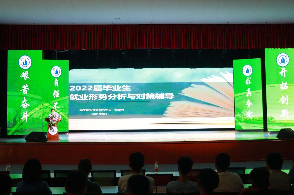 杨金明就“认清形势、把握趋势、知己知彼、从容应对”四大方面做了详细具体的讲解,帮助同学们树立正确的就业观和择业观,使广大同学了解就业形势、就业政策、转变就业观念,提高就业技能,推进学院就业工作,进一步提升就业质量。