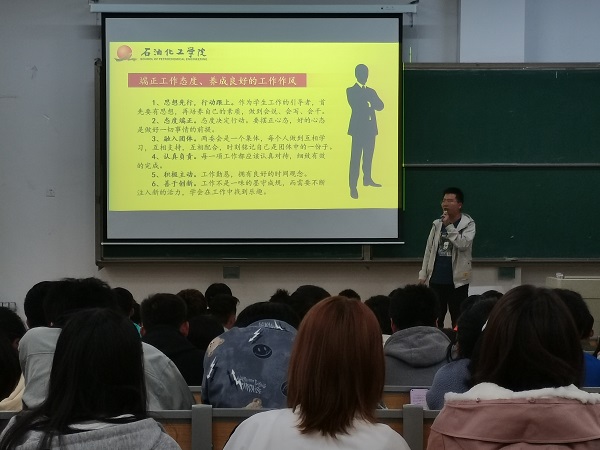 为深入学习贯彻习近平新时代中国特色社会主义思想,用习近平总书记关于青年工作重要思想指引青年成长成才,10月14日晚,石油化工学院团委、学生会在集贤楼308召开专题培训会。会议由学院团委书记常婕主持,学院团委、学生会全体工作人员参加了培训。