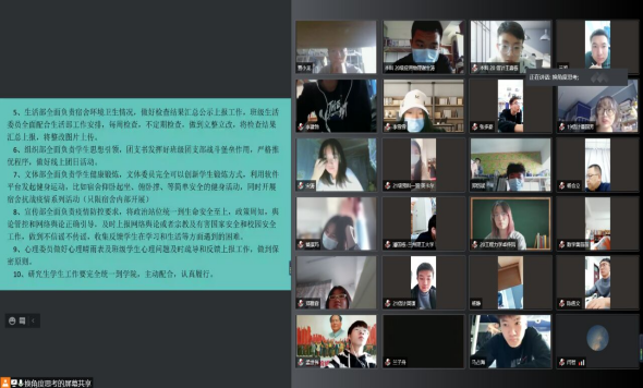 安星说,疫情形势严峻复杂,充分发挥党员、学生干部的战斗堡垒作用,疫情期间学生的阵地在宿舍,结合抗疫防控对于宿舍管理提出8各方面的要求,同时对网络安全、心理健康、宿舍内文艺活动创新性开展等做了详细要求,对党员、学生干部职责提出10个方面的要求。