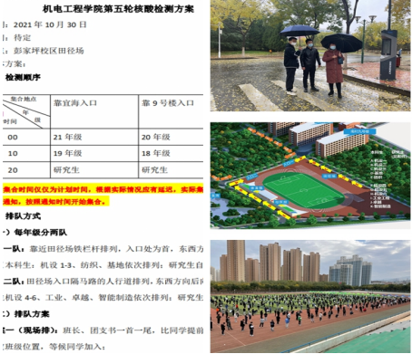 学院领导班子、学院学生工作办公室多次召开疫情防控专项工作会议,安排疫情防控相关工作。学院组建起以主管学生工作领导、辅导员、班主任及研究生导师、党员及班团学生干部、宿舍长的五级联防联控工作队伍,以宿舍为网格管理单位,确保学校的各项疫情防控制度和要求及时贯彻落实到位。通过现场分析,科学制定学生核酸检测实施方案,副书记和辅导员现场组织学生开展核酸检测,确保相关工作安全稳定有序。