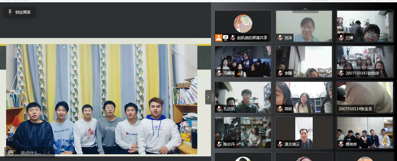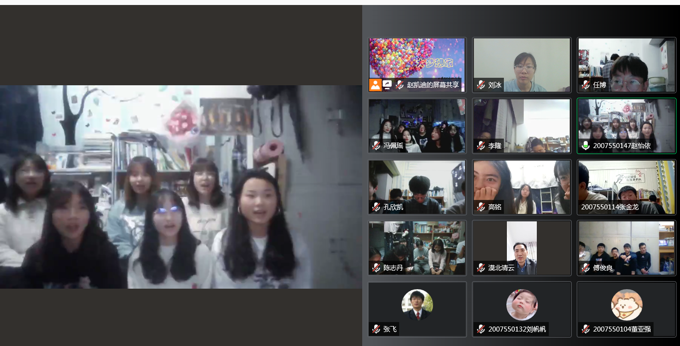 首先,陈永泰通报了当前疫情防控所面临的形势和要求,介绍了学院所做的工作,对同学们在疫情期间的表现给予了肯定,并希望大家树立阳光心态,众志成城,共克时艰。张飞向同学们致以亲切的问候和良好的祝福。