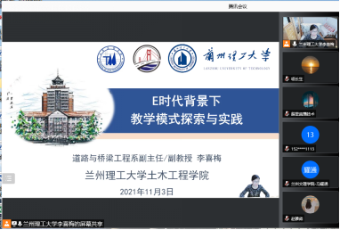 应超星公司邀请,土木工程学院教师李喜梅于11月3日,为学校和全省教师做了题为“E时代教学软硬件的应用、教学模式的探索和超星学习通平台的应用”主题报告,腾讯会议直播间和超星直播间参与讨论的老师达到300人以上,充分就线上教学做了分享,为全省高校教师“停课不停学”居家授课提供了有益的借鉴。
