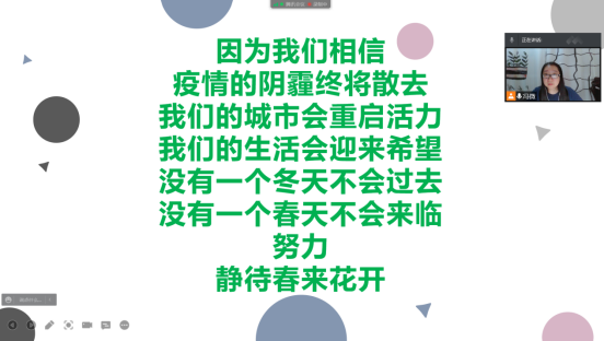 变“疫情”为动力,化“逆行”为变革,结合新时代教育要求促进教学方法的全方位变革。疫情还没有得到完全的控制,还未迎来拐点。将精力投入到教学各项事业的准备、思考和实践中,使得焦躁的心情得以了缓解,我们知道疫情当前,我们可能做不了太多实际意义的行动。突然间,镜头一转,那些“逆行”的背影蓦然回首朝我们微笑着,他们是多么的美丽和可爱的人啊,哦!是的!忽然间我们好像明白了,也知道了,也坚定了我们所要做的事情。(撰稿人:项长生;审核人:田治学)