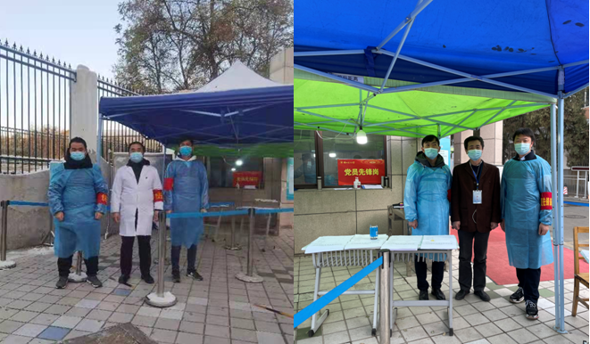 共克时艰,师生党员在一线。疫情就是命令,防控就是责任,能动学院师生党员主动走在校园疫情防控工作的最前面。学院领导和教工党员参加学校党员先锋岗,在兰工坪校区东门查看进出人员的健康码、行程卡、出入证明。学生党员、入党积极分子自觉加入志愿者队伍,在学生宿舍楼出入口查验健康码,控制学生人流量,督促学生测量体温。