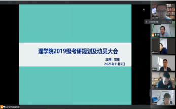 为帮助2019级考研的学生更快更好的适应考研复习生活,加强学生对考研的规划,兰州理工大学理学院团委于2021年11月8日下午15:00召开线上视频会议。此次会议由团委书记安星主持,理学院党委副书记杨合立出席会议,2019级全体考研学生参会。