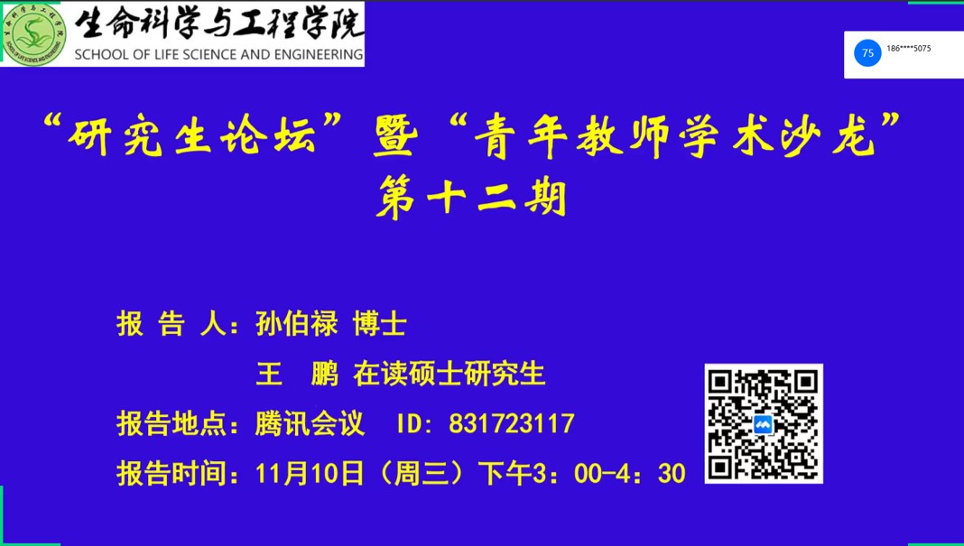 为推动青年教师更好的成长与发展,加强学院青年教师合作交流,提高青年教师综合能力,以及活跃科研氛围,提高研究生培养质量,让生命学院师生了解生命科学领域的前沿研究,更好地着眼基础研究、认识科研、开展科研,拓展研究生学术视野,11月10日下午,生命科学与工程学院第十二期“研究生论坛”暨“青年教师学术沙龙”在线上举办,报告会由伍国强院长主持,生命学院180余名师生参加了本次论坛。
