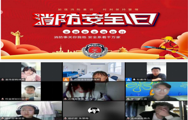 11月9日,外国语学院举办 “增强消防意识,共建安全外院”云端消防知识讲座。讲座由学院团委书记杜嘉伟主持,各班级生活委员、宿舍长等110名学生参加。