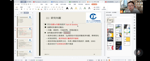 《会计理论与方法》课堂上,孙蕊老师利用学生汇报与教师讲解等形式多样的教学方式进行授课,增加了老师和学生的互动,让线上课堂增加了几分乐趣,也是课堂氛围更加热烈,让同学们在轻松和愉悦的氛围中学到了知识增长了才干,也在疫情当下保持轻松的心态,缓解了压力。