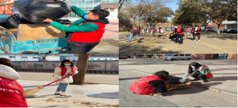 落叶堆积到街道无痕,清扫过校园街道变得清亮整洁。同志们从穿戴整洁无暇到尘土汗水沾身,每一位同志在寒冷的天气中以一颗火热的心,为校园服务、为同学服务。党员和入党积极分子求真务实的精神,努力干好实事,服务他人的精神境界也得到了进一步提升。