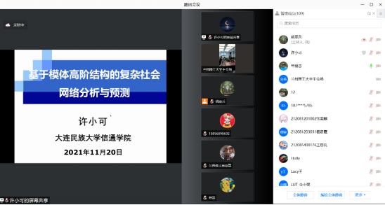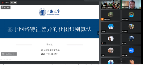 许新建教授以《Efficient hypothesis testing for community detection in heterogeneous networks by graph dissimilarity》为题,分别从Efficient hypothesis testing角度,介绍了基于网络演化的社团发现算法理论,从而更加精确地刻画实际网络。