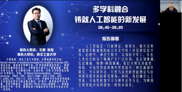 王震教授做了《多学科融合铸就人工智能的新发展》的主题报告,分别从功能性智能、对抗性智能和博弈性智能三种层面,以不同形式、不同尺度与深度的研究视角,介绍了该团队在智能理论与应用研究的研究进展。