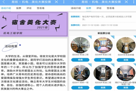 本次比赛的评选和展示主要以线为上主,不仅没有影响比赛的进程,更是丰富了疫情防控期间同学们的校园生活。过程中,同学们围绕宿舍名称设计、宿舍氛围营造、舍徽创新设计、宿舍规定制作、手工挂件设计等方面进行了紧张忙碌的宿舍文化建设,参赛寝室设计各具特色,有的朴实温馨、有的绚丽多彩,宿舍地面整洁、床铺整齐、物品摆放有序、气氛温馨和谐,无不彰显着我院学生的高昂热情和创新思维。经过评委打分以及易班投票展示,最终共评选出10间“十佳宿舍”和6间“优秀宿舍”。