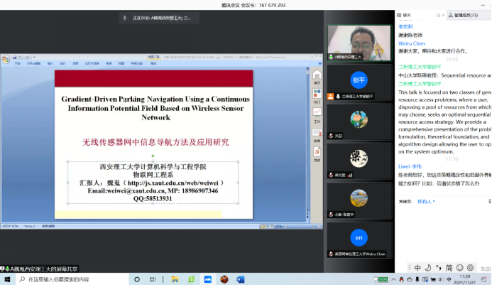 西安理工大学副教授魏嵬博士在作报告- Gradient-Driven Parking Navigation Using a Continuous Information Potential Field Based on Wireless Sensor Network.