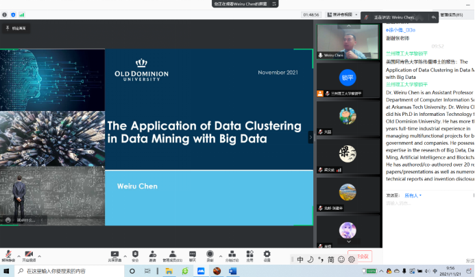 美国阿肯色理工大学陈伟儒博士在作报告-The Application of Data Clustering in Data Mining with Big Data