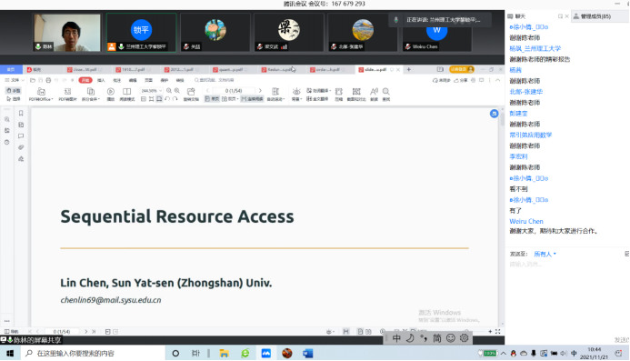 法国学者、中山大学陈林教授在作报告- Sequential resource access
