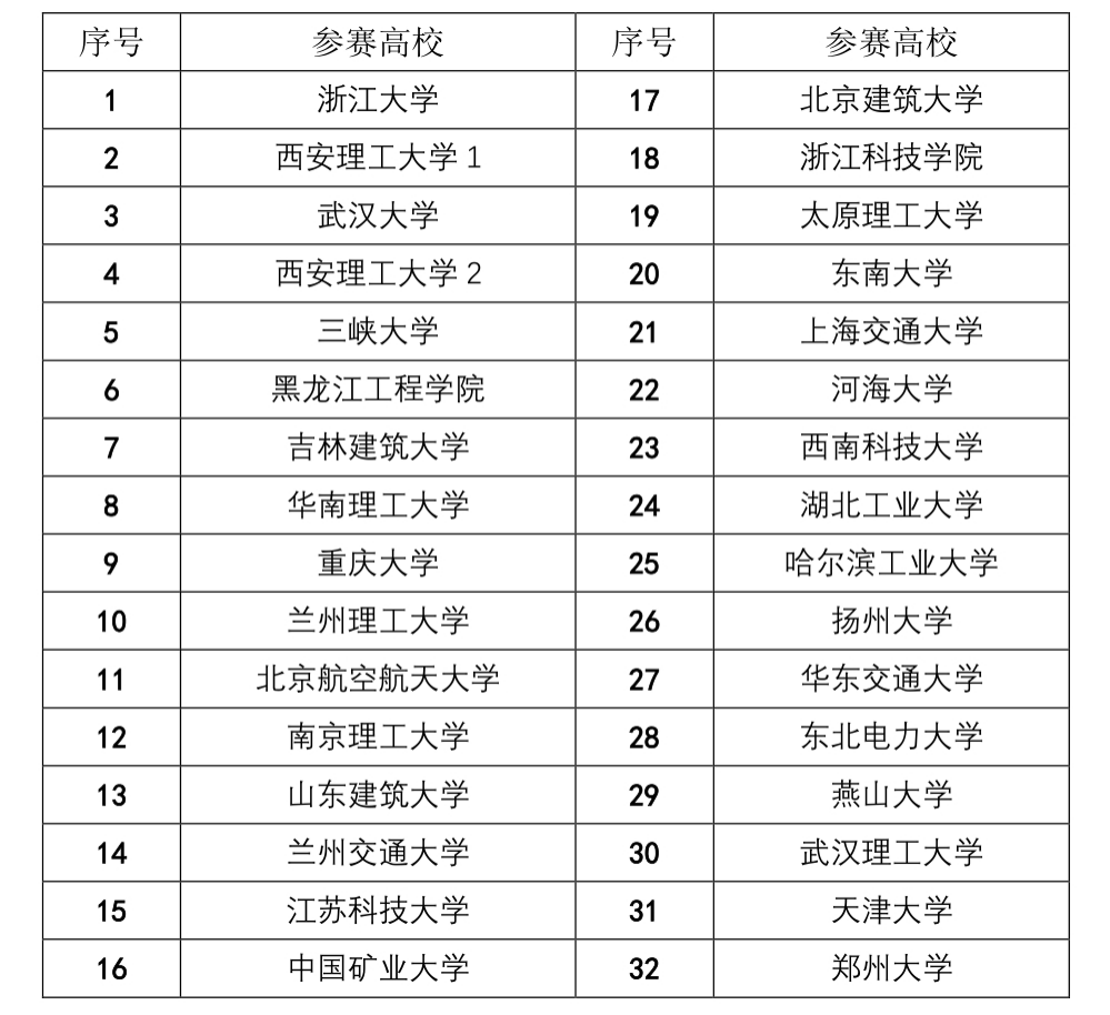 第四届全国大学生岩土工程竞赛决赛代表队名单