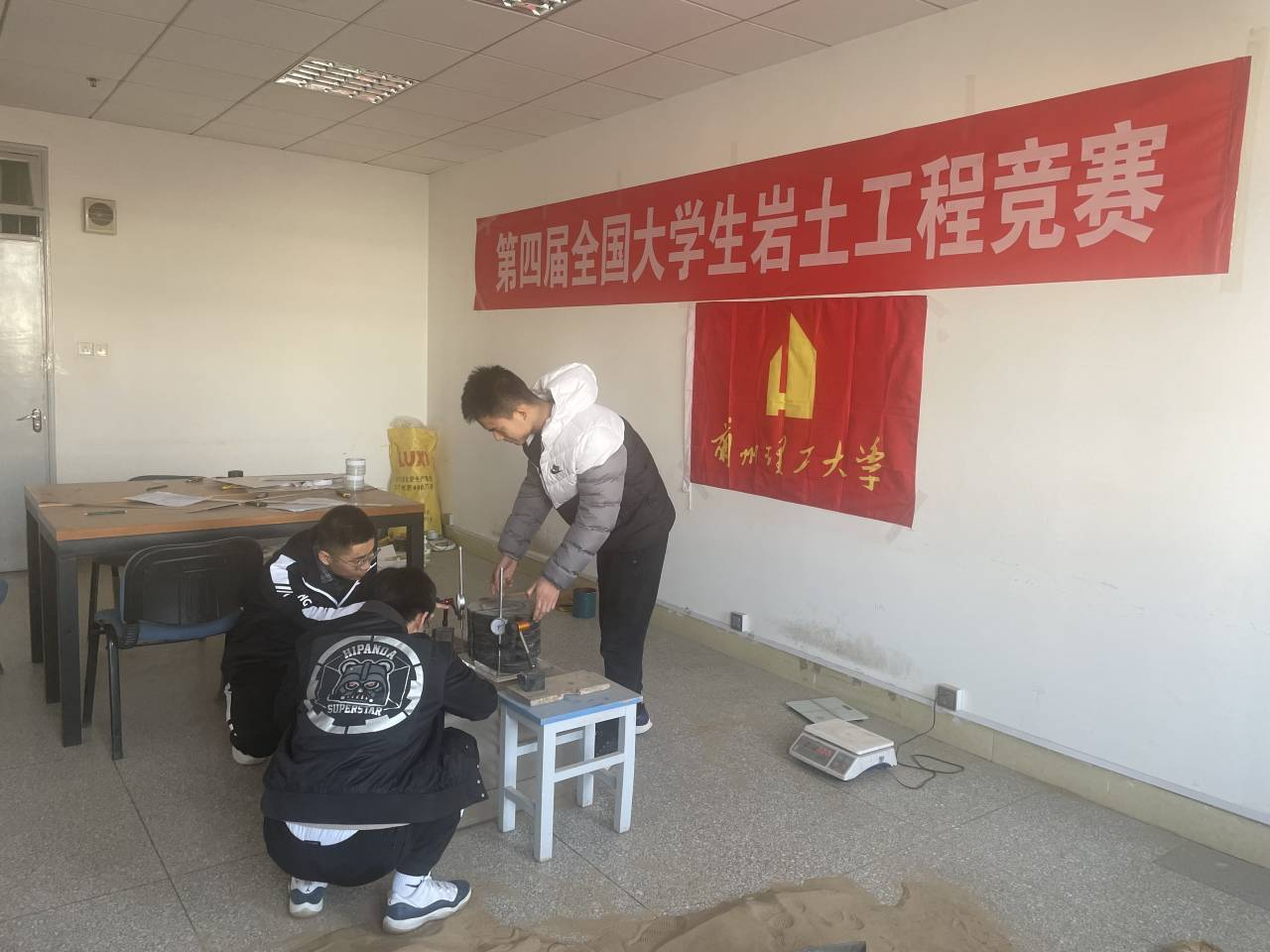 竞赛题目为“支撑条件下的基坑开挖”,自赛题公布以来,学校和学院高度重视并通过校内选拔赛确定了参加第四届全国大学生岩土工程竞赛的代表队,参赛代表队前后共进行模型试验20余次,最终设计出了更优的基坑开挖支护模型。