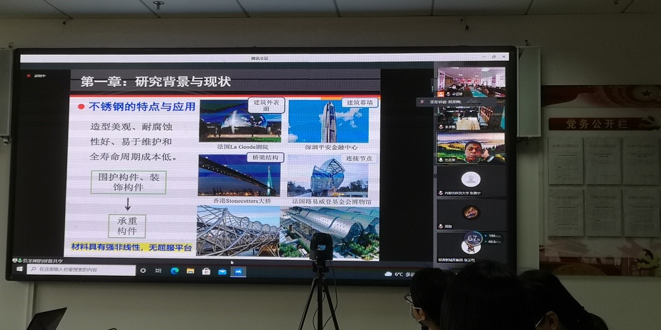 应兰州理工大学土木工程学院邀请,东南大学土木工程学院建筑工程系范圣刚教授于11月26日下午在腾讯会议作线上学术报告。报告由土木工程学院院长王文达教授主持,采用线上+线下的会场方式进行,学院朱彦鹏教授、副院长周凤玺教授、副院长殷占忠教授、相关专业教师、多名博硕士研究生以及省内外其他院校的师生、甘肃省土建学会钢结构学术委员会的部分委员参加了本次报告会。