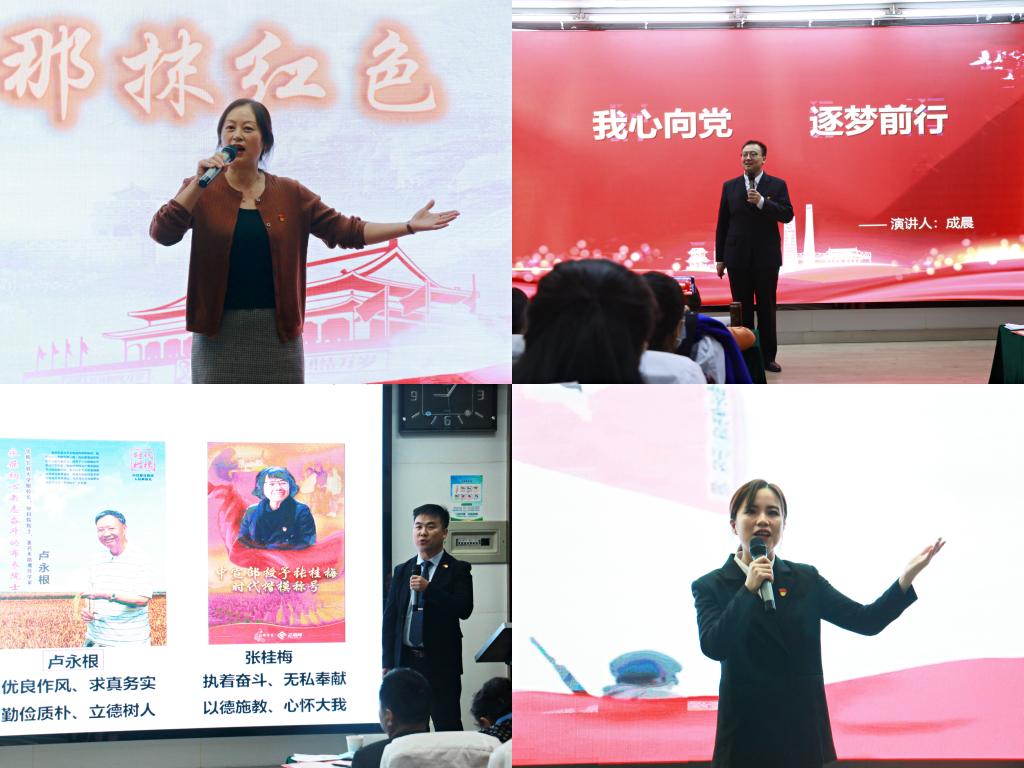 11月27日下午,由校工会、校团委举办的 “我心向党”青年教职工演讲比赛在兰工坪校区1号北楼204教室举行。学校党委副书记丁虎生,校工会常务副主席田波、校团委副书记王文霞,参赛选手、师生代表观看比赛。