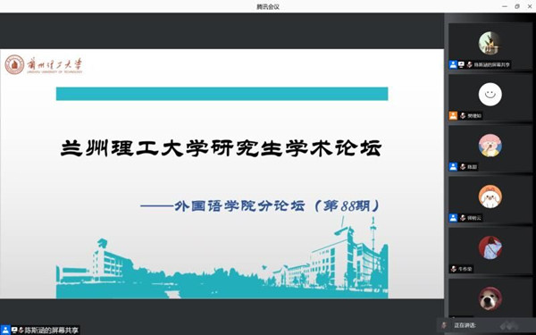 11月29日,外国语学院举办线上兰州理工大学第88期研究生论坛学院分论坛,论坛由学院2019级外国语言学及应用语言学专业优秀学生代表师转云和薛富丽主持,学院全体研究生参加。