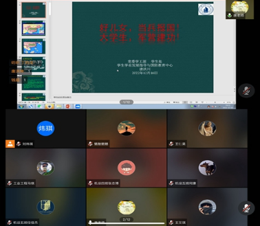 为推进我国国防和军队现代化建设,鼓励学生积极参与应征入伍,提高兵员征集质量,12月16日晚,机电工程学院开展新生入学教育国防教育与征兵宣讲专场报告会。本次讲座由校学生学业发展指导与国防教育中心唐洪川老师主讲,21级辅导员刘炜琪主持,21级全体新生线上观看了本次讲座。