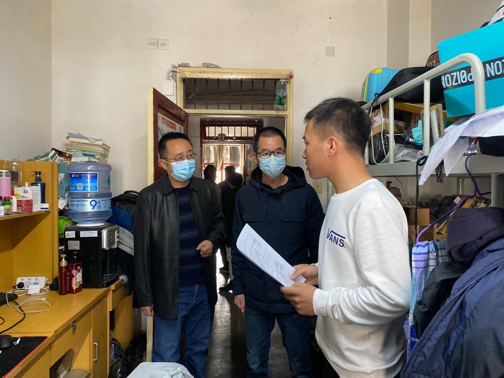 走访中,吴学楷书记反复叮嘱学生出门戴好口罩,近期天气温差较大,及时添加衣物,打理好个人生活,避免感冒、发烧。出现感冒、发烧症状,及时请假就医。有困难向老师反映,寻求帮助,多跟同学交流,纾解个人情绪,避免出现负面情绪积累。通过与学生交谈,了解学生对学校防疫措施的看法,向学生讲解防疫形势和防疫措施的依据,让学生从心里认可防疫措施,理解防疫要求,自觉遵守防疫规定。