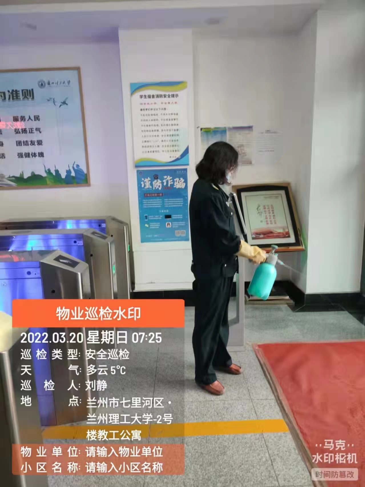 自本次疫情发生以来,兰州国资利民物业作为我校兰工坪校区的物业服务单位,根据相关防疫要求以及学校疫情防控相关安排,物业人员坚守在防“疫”一线,为我校兰工坪校区及前后家属院建立牢固的“防疫墙”。