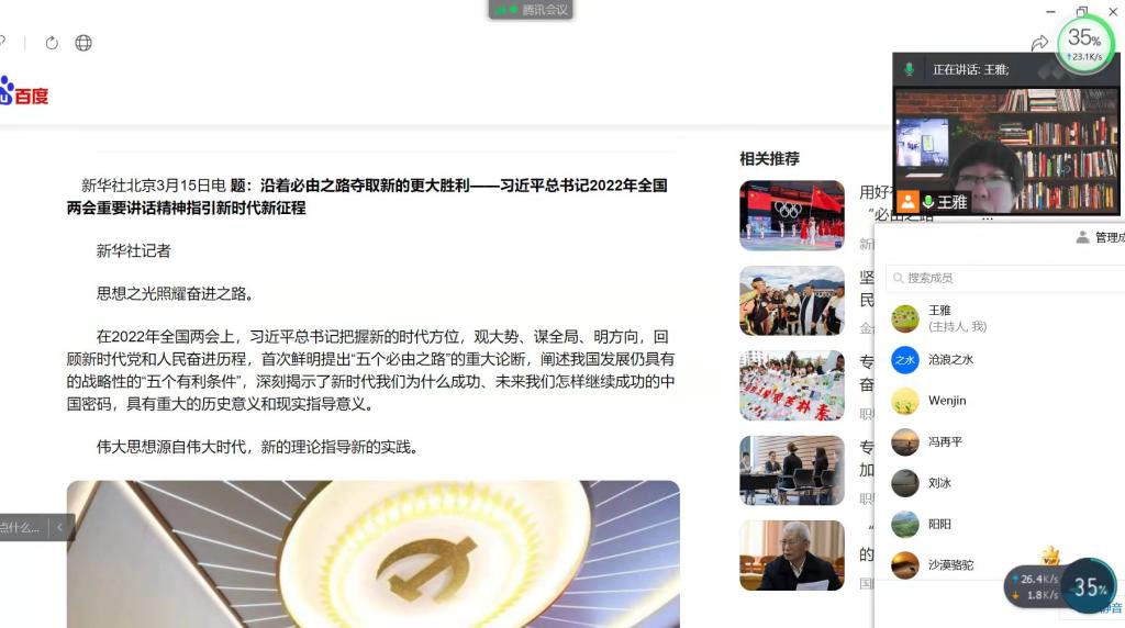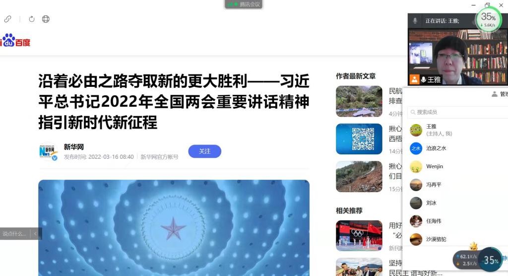3月22日下午,生命科学与工程学院食品科学与工程教师党支部通过腾讯会议学习习近平总书记2022年全国两会重要讲话精神---沿着必由之路夺取新的更大胜利。食品科学与工程专业全体教师党员参加会议,由支部书记王雅主持。