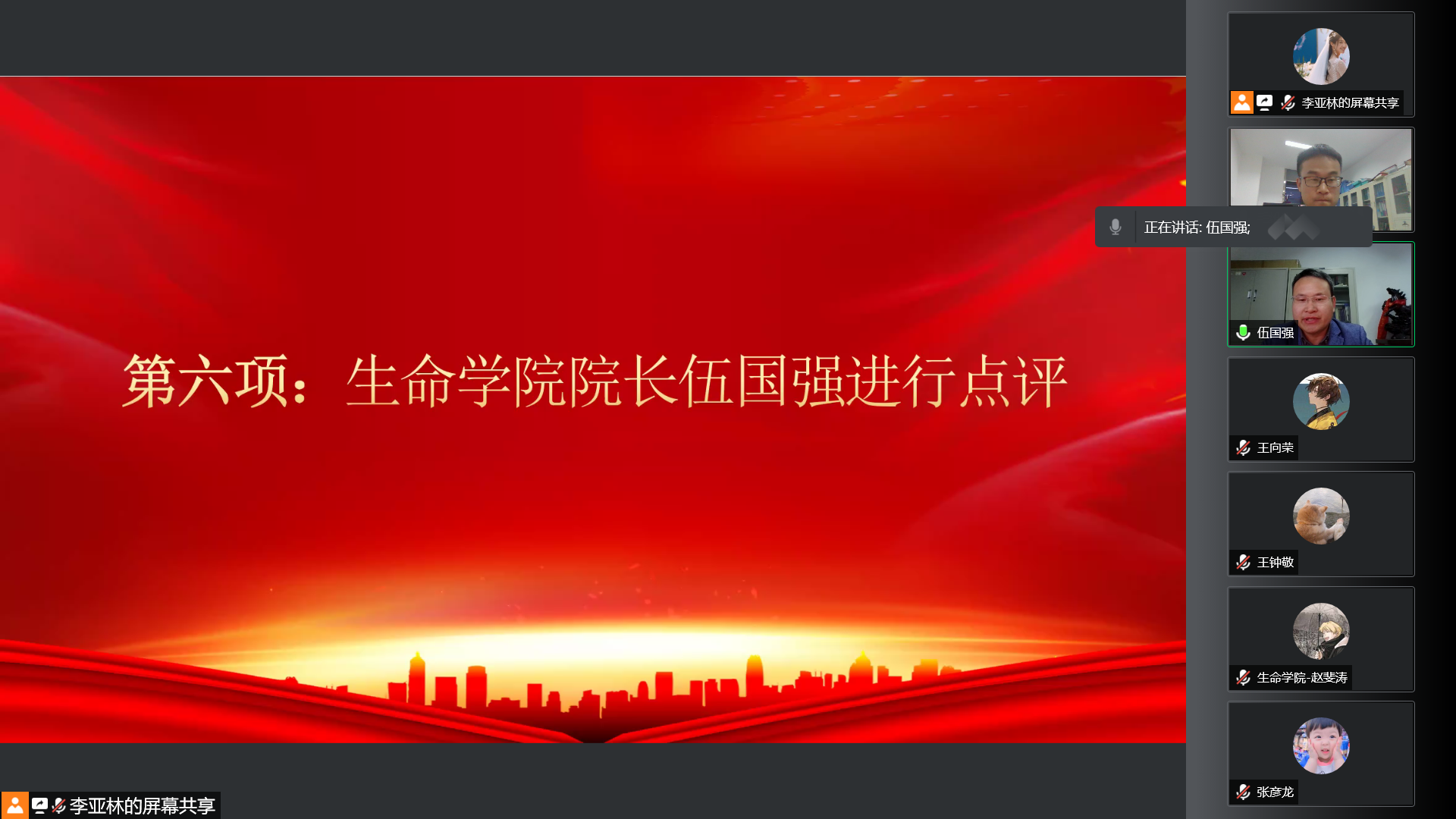 田波主席首先对本次组织生活会的前期准备和会议程序表示肯定,其次建议分组开展批评与自我批评提出意见、建议,并希望支部党员在疫情防控工作中做好表率,发挥党员先锋模范作用。伍国强院长指出本次组织生活会准备充分、意见征集全面,提出党员同志要继续加强学习、做好表率、强化意识,成为一名优秀党员。