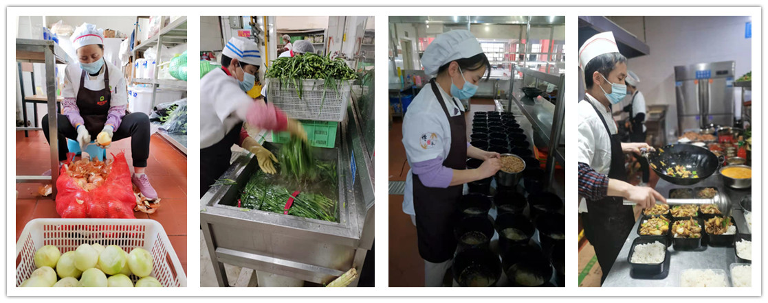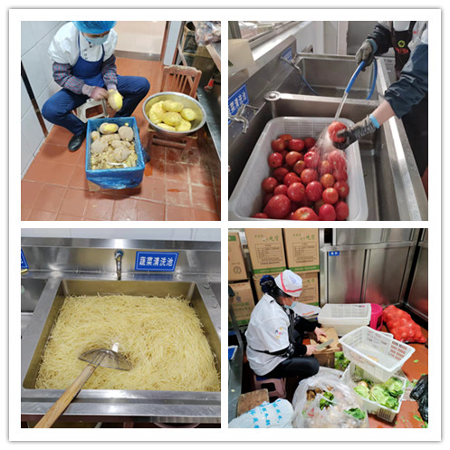 抽空吃点早餐后,更紧张的午餐备餐工作开始了,保洁消毒通风一定要做实做细