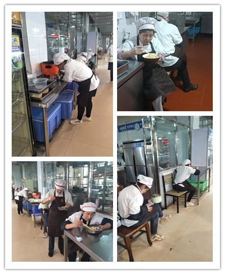 现在是下午2点了,紧张的午餐供应结束,这会才是我们自己的午餐时间,熏过油烟味的我们已无多大食欲,随便对付一口后,拖着疲惫的身躯,回到临时宿舍调整一下,下午还要继续。