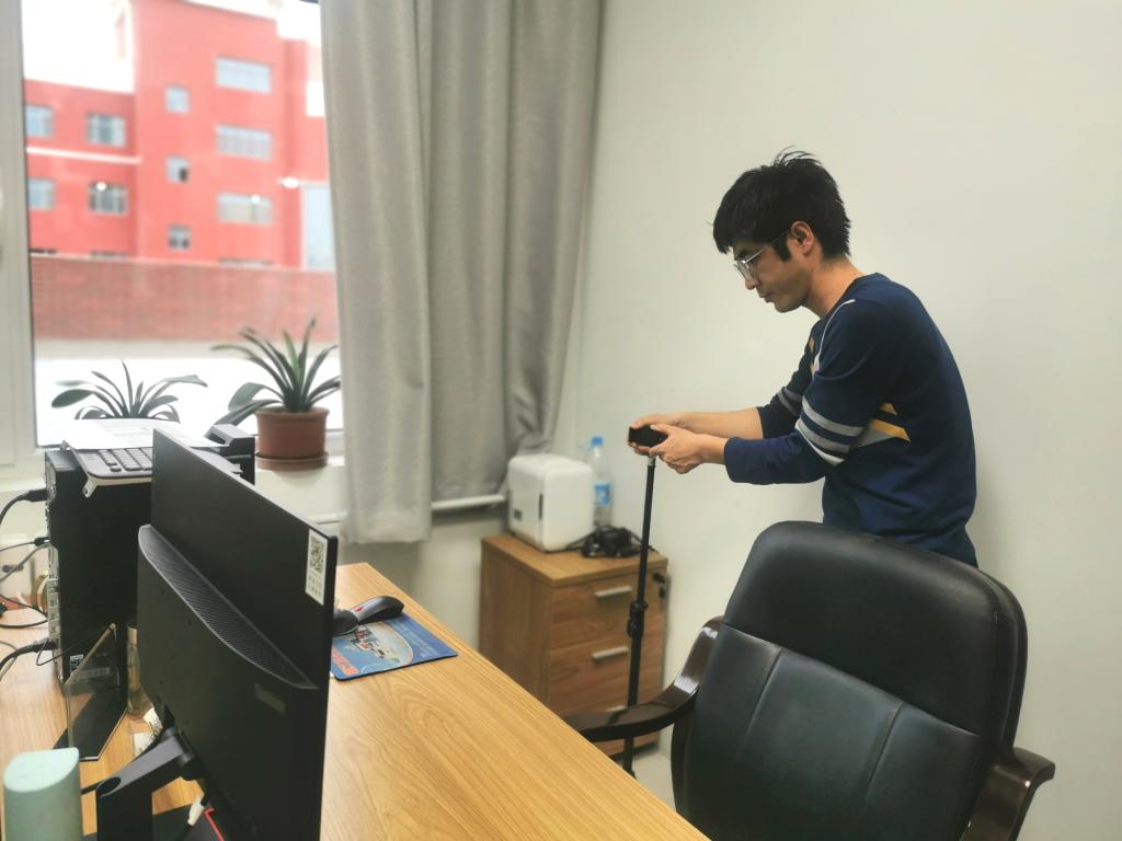 辅导员老师调试面试设备