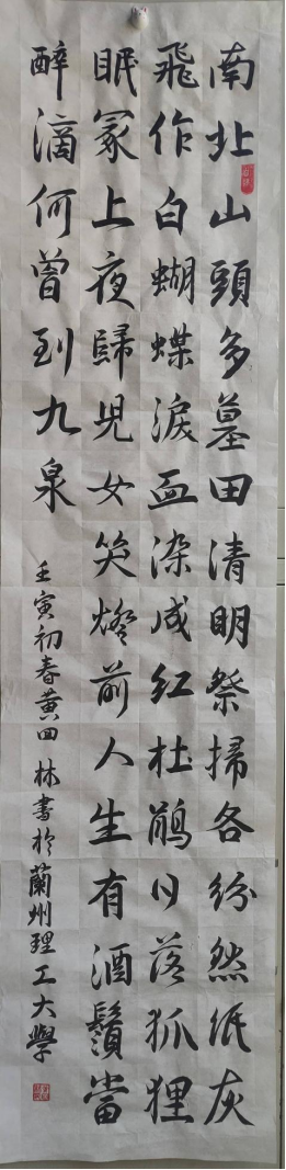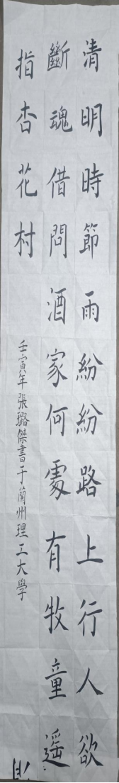 为弘扬中华传统节日,加快推动校园文化建设,借此追忆先烈,弘扬红色经典文化,4月5日,兰州理工大学理学院墨研月书画协会在校团委的带领下,举办了本次“缅怀革命先烈,牢记初心使命”的清明节线上书画展览活动,号召广大红柳学子用传统书法的形式追忆革命先辈,向烈士致敬,借诗词中真挚的情感,以及娟秀或遒劲的书法作品表达对逝去的革命志士的缅怀之情。同时,通过书法创作,为同学们提供一个丰富校园生活和交流书法知识的平台,吸引同学们在疫情阻击战中纷纷提笔沾墨,参与到书法创作中。此次书法展览活动不仅展示了我校学生的艺术修养,也有助于加强传统文化在社会中的传播和影响,增强文化自信心和自豪感。