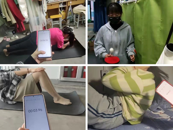 为丰富“停课不停学”期间学生的文体活动,此次线上运动会分为两个活动,一是齐心抗疫之个人“运动小妙招”,二是运动防疫小能手之“超人”挑战杯,共设置60秒俯卧撑计时赛、60秒仰卧起坐计时赛、60秒卷腹摸膝计时赛、60秒颠乒乓球计时赛、2分钟踢毽子计时赛、2分钟跳绳计时赛、平板支撑耐力赛等7个竞技项目。参赛选手们进行着一场场激烈的角逐,比赛规则严格规范,隔着屏幕也能感受到比赛紧张的气氛。