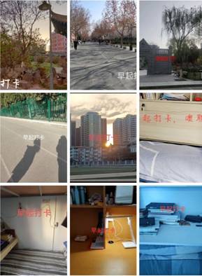 一日之计在于晨,每天的打卡从早起学习打卡开始,青马学员们身居“一线”,坚持早起督促同学参与网课学习。学习之外的活动也延伸至日常生活,干净整洁的宿舍环境营造出良好的舍风,青马学子带头组织广大同学打扫好宿舍卫生,虽疫情封校,但是要有热爱生活的信念信心!为响应学校不得食堂堂食的防控要求,青马学子带头使用自己的饭盒,环保用餐,并积极组织全体同学参与并完成“光盘行动”,用自身的行动给同学们带来了积极向上的一面!