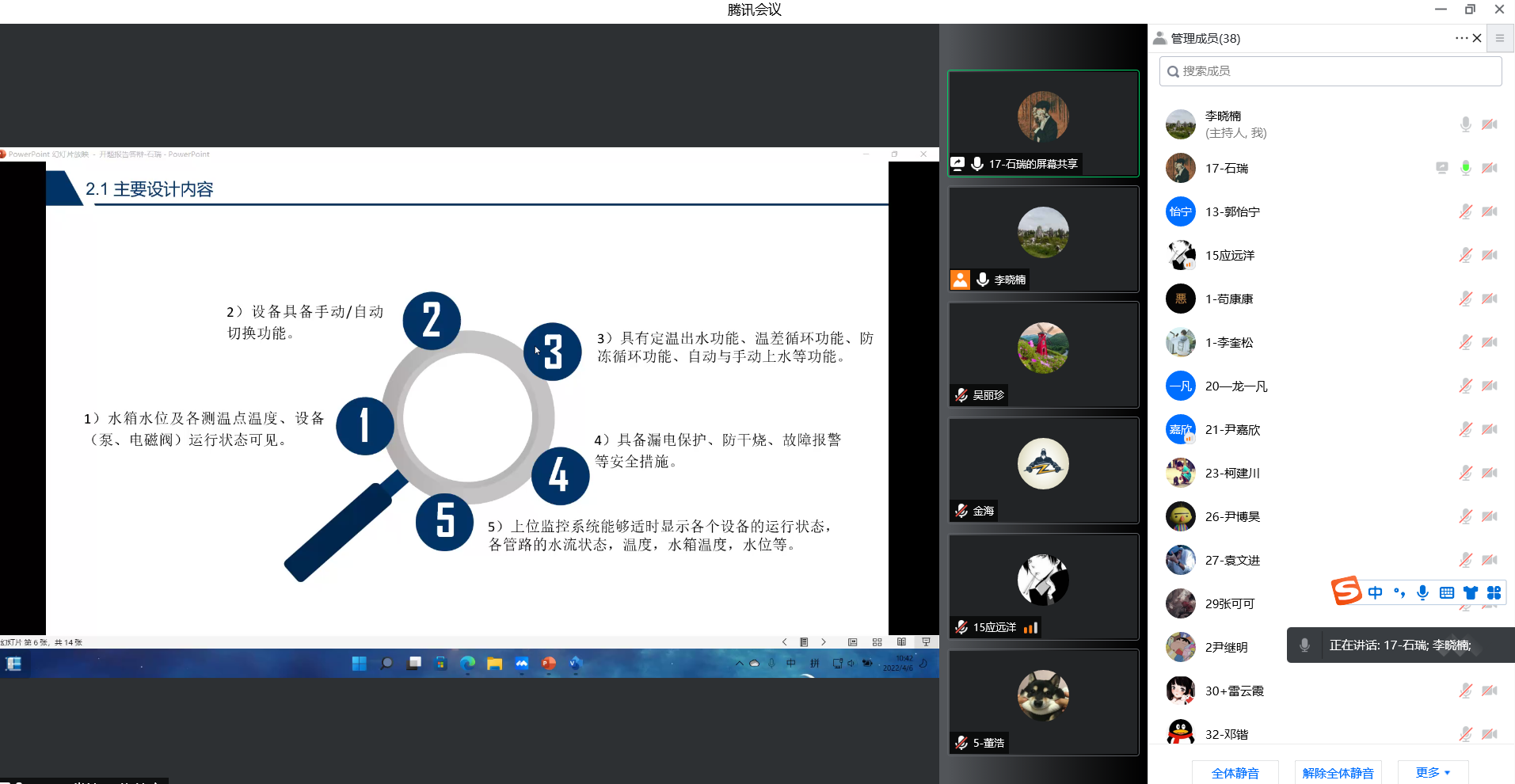 因疫情校园封闭管理,电气工程系于4月5、6日启动并完成了2018级电气工程及其自动化专业学生的毕业设计/论文开题答辩工作。为做好本次线上开题工作,电气专业邀请了国网甘肃省电力科学研究院、甘肃送变电工程有限公司、甘肃省建筑设计研究院、510研究所等单位的六位企业导师参与开题指导。另外,将参与此次毕业设计/论文的学生263名(含留学生5名)分为6组进行,通过增加分组数,降低每组学生的数量,由此保证充足的时间对每位学生设计方案、技术路线等关键点做深入了解和指导。