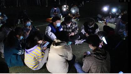 学习部、易班、体育部开展部门交流联系活动,为了缓解同学们之间陌生感,首先进行了丢手绢游戏,同学们在你追我赶中,玩得不亦乐乎,热场游戏结束后,同学们开启了“纸杯传水”、“双人夹气球”、“报数31”等活动,伴随着夜幕的降临,大家坐在一起唱歌聊天,带着愉悦的氛围,结束了这富有意义的团建。