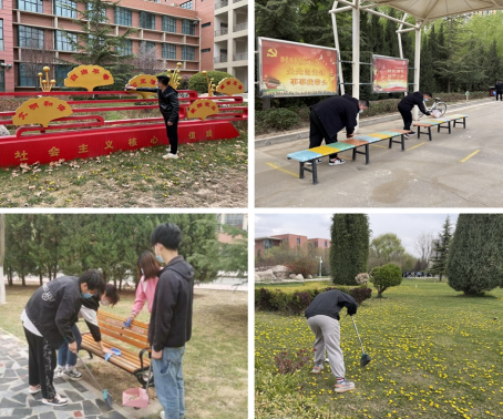 此外,学院团学组织工作人员及部分入党积极分子在宜海湖边、田径场、教学楼周边、绿化带等区域开展了环境清扫活动,大家拿着扫帚、簸箕、垃圾袋等工具,对校园内的枯枝落叶、干枯杂草、纸屑、烟头等垃圾进行了认真清扫,确保校园的干净整洁。