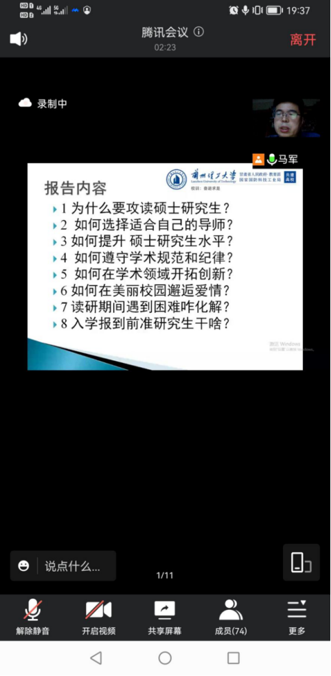 4月20日,理学院线上开展2022级拟录取研究生入学指导报告会。会议由学院副院长马军教授主持。