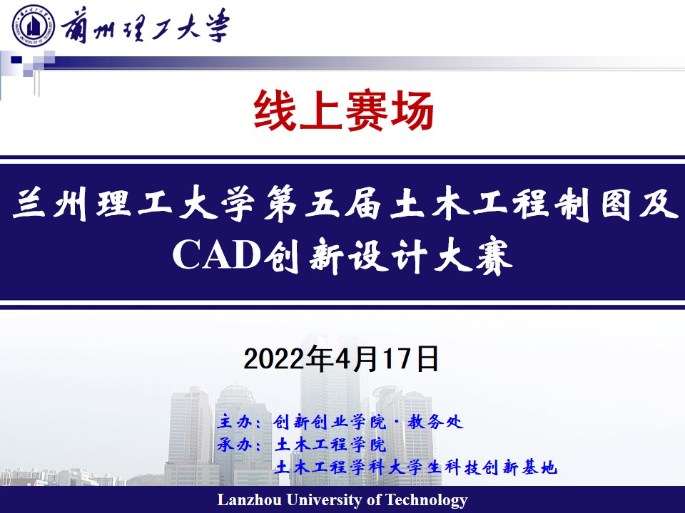 为加强学生综合设计能力和创新意识的培养,强化学生应用计算机二维绘图和三维建模技术的能力,提高我校大学生利用创新思维进行工程设计实际工作能力,鼓励大学生踊跃参加科技创新活动。根据《关于举办第十五届全国大学生先进成图技术与产品信息建模创新大赛决赛的通知》文件精神,由教务处·创新创业学院主办、土木工程学院承办的兰州理工大学第五届土木工程制图及CAD创新设计竞赛于4月17日顺利举办。