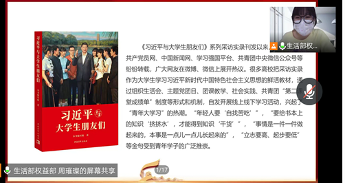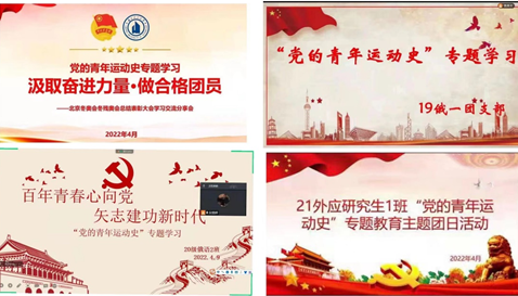 坚持支部全覆盖。把团支部作为开展教育实践活动的基本单元。开展团支部“活力提升”工程,立项支持55个团支部特色项目创建。每月初发布本月主题团日活动指南,月底评选本月优秀团日活动。在4月份团支部活动指南中,将党的青运史专题学习列为团日活动必选项。全校基层团支部纷纷通过主题团课、讨论分享、学习打卡、网上祭英烈、线上观影等形式,系统学习党领导下中国青年运动的光辉历程,深刻领悟共青团作为党的助手和后备军的内在逻辑。开展团支部红色经典接力诵读、主题团日活动大赛、团支部风采展节目作品征集,展示团支部健康积极、乐观向上的形象和建设成果,抒发对党和国家的热爱,传承红色精神。目前,“智慧团建”党的青运史专题学习统计率超过80%,累计覆盖23000余人次。学校“青年大学习”平均参与率在80%以上。