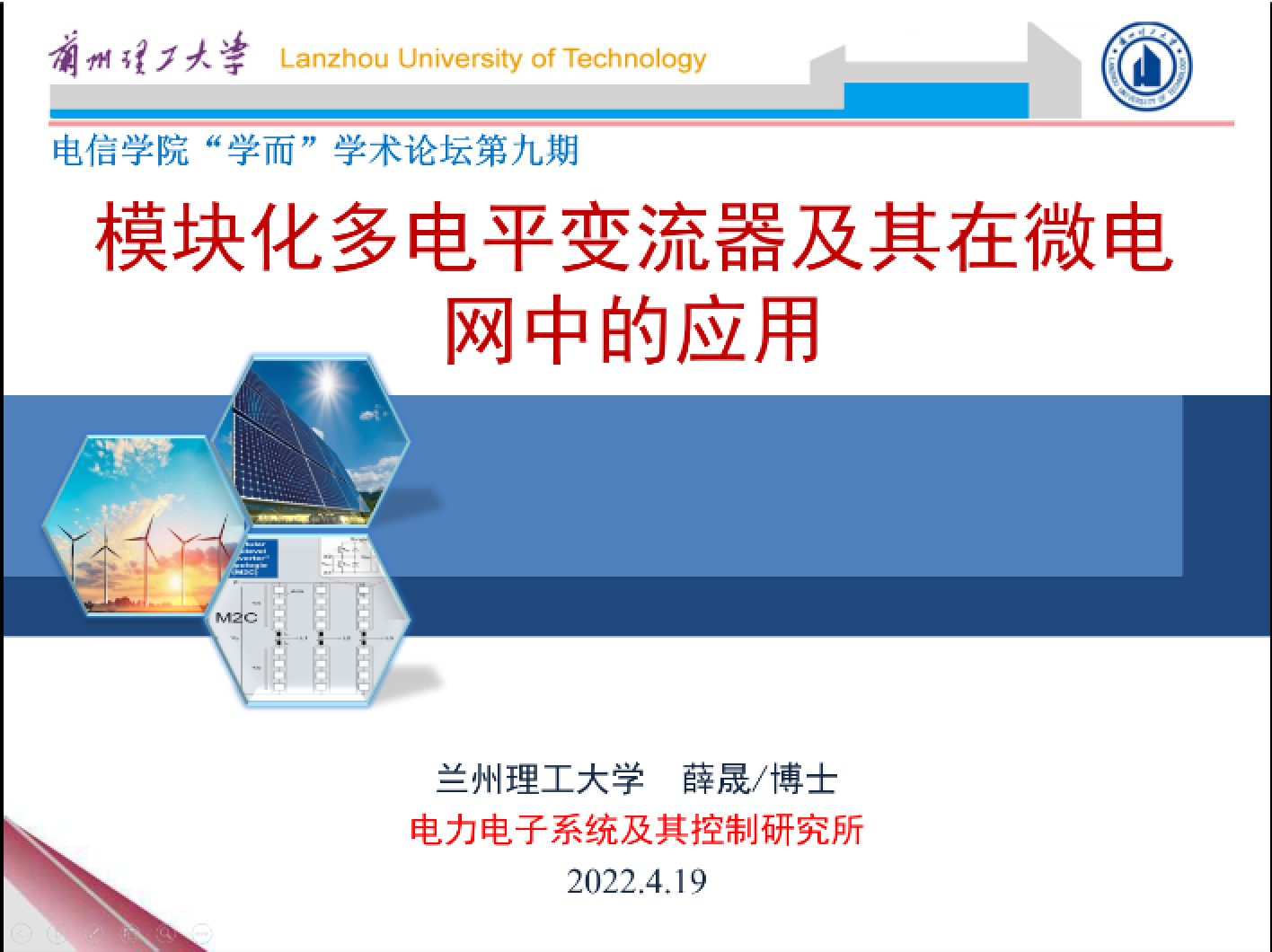 裴婷婷博士和薛晟博士别以《光伏发电系统中光伏阵列的故障诊断与配置重构策略研究》和《模块化多电平变流器及其在微电网中的应用》为题为硕士研究生做了精彩的学术报告。两位老师结合自身研究经历,就课题选题背景、研究意义、步骤及方法对同学们进行了详细介绍。同时对同学们提出几点期望:第一,提升知识储备,强化专业技能;第二,注重理论研究与工程实践相结合。