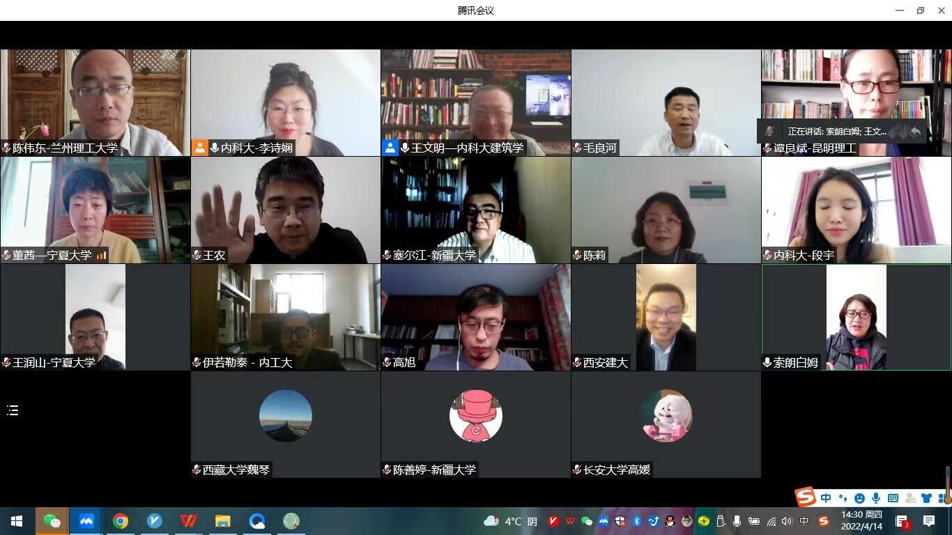 此次答辩来自西安建筑科技大学、长安大学、内蒙古工业大学、内蒙古科技大学、西南交通大学、昆明理工大学、兰州理工大学、新疆大学、西藏大学、宁夏大学的31组同学分成六组进行线上答辩。答辩过程中,各校学生汇报精彩,各组教师点评精准。答辩结束后,各组与各校教师进行总结与交流,并对下一阶段的工作做了安排。