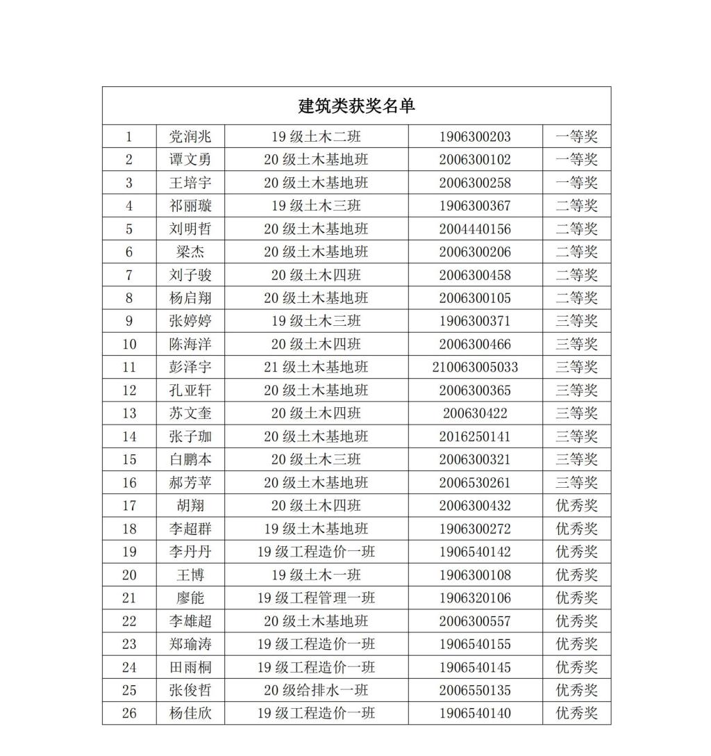 兰州理工大学第五届土木工程制图及CAD创新设计竞赛获奖名单