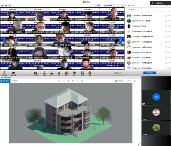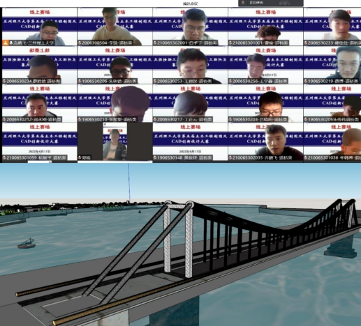 本次竞赛分为建筑类和道桥类两个组别,竞赛内容包括计算机二维绘图和计算机三维建模两部分,近200名同学报名参赛。受疫情影响,本次比赛采用线上方式。为进一步让参赛同学熟悉比赛流程,确保比赛的顺利进行,土木工程学院成立了以副院长李万润教授为组长、土木工程科创基地及相关专业背景老师参与的工作小组,制定了详细的竞赛方案与保障预案,确保线上比赛顺利进行。赛前,阅卷老师代表念腾飞副教授和张磊老师就本次比赛的各项则以及参赛要求进行了详细解读。