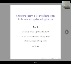 张志涛研究员、代国伟教授及姬超副教授分别做了题为《Some new results on the Chern-Simons-Schrodinger system》、《Bifurcation theory of nonlinear operator equations and its applications》、《A monotone property of the ground state energy to the scalar field equation and applications》的精彩学术报告。报告结束后,三位报告人详细解答了师生提出的相关问题,并且就疫情形式下的教学与科研展开了探讨与交流。通过此次学习交流,一方面让相关研究生了解了当前的学术前沿及热点,同时也加强了与同行之间的学术交流。(撰稿人:关雯, 终审人:刘全恩)