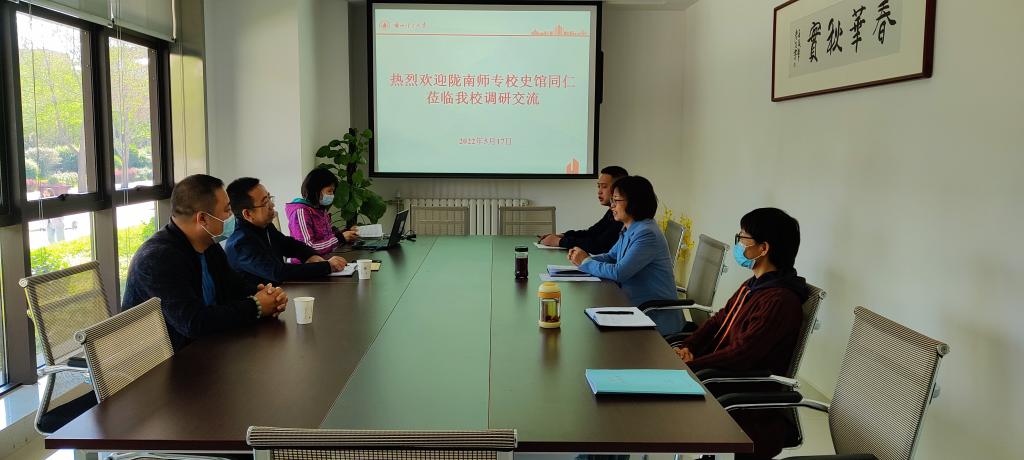 5月17日上午,陇南师范高等专科学校校史馆馆长刘吉平一行来学校档案馆就档案馆建设事宜进行工作调研。档案馆馆长李凤琴热情接待了陇南师专档案同仁,档案馆科室负责人及相关工作人员参加调研座谈。
