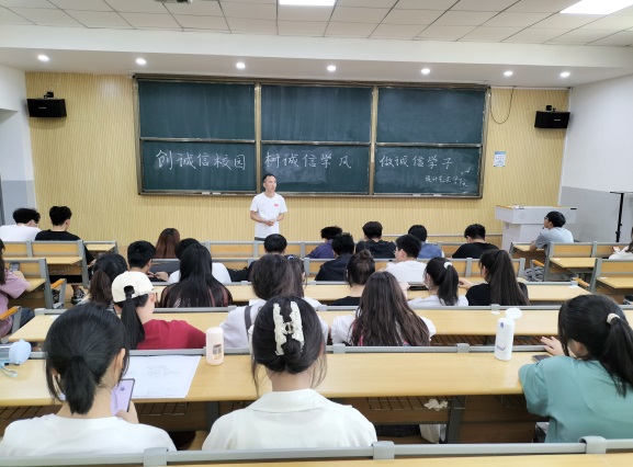 宣讲会上,汪红祥老师首先就大学生诚信教育目的、主题教育活动内容进行解读,让学生进一步了解诚信的基本内涵,提高学生征信意识、金融意识、法律意识等,增强当代大学生的责任感,帮助他们树立正确的消费观、荣辱观、价值观。随后,同学们分别从学习诚信、经济诚信、生活诚信和就业诚信等方面进行了分享。